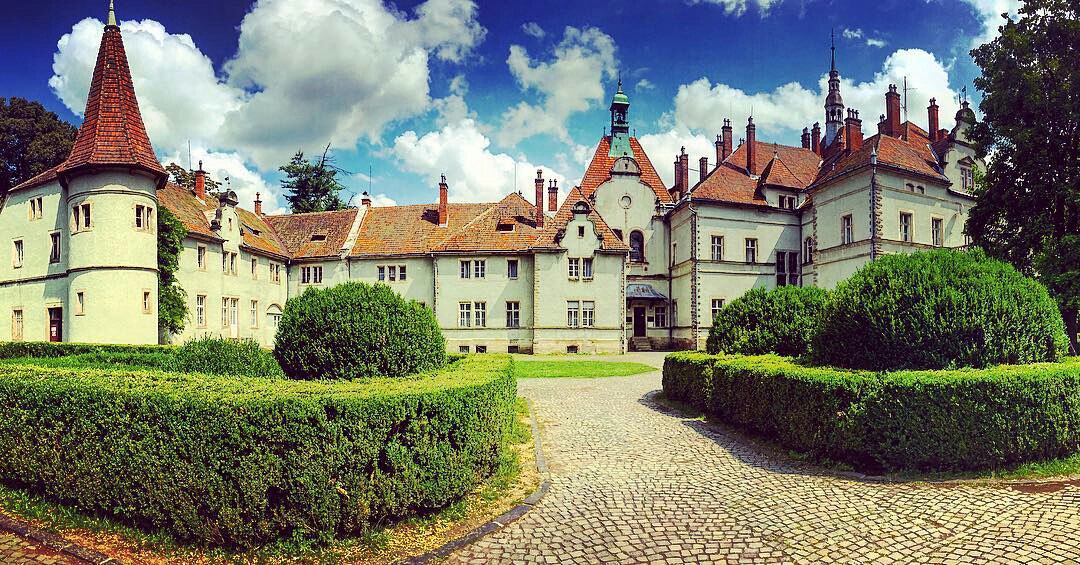 Багату на рослинність природу Шенборни вирішили облагородити та ще більше збагатити. Тому навколо палацу на площі 38 га у 1848 році був закладений сад-дендрарій. Його окрасою є рукотворне озеро з будиночком для лебедів посередині парку та екзотичні рослини, привезені з усіх куточків планети. Озеро з самого початку його утворення повинно було відтворювати контури Австро-Угорщини. На превеликий жаль, сьогодні озеро мало чим нагадує мапу величної імперії. Серед рослин, що тішать око туристів, можна зустріти улюбленицю всіх відвідувачів - японську сакуру, рожевий бук, японські вишні та айву, оцтове дерево, італійські гліцинії, кірказони, самшит, веймутову сосну, канадську ялину. На 19 га розмістився англійський сад, що зберігає елементи дикої природи. А її жителі – дерев'яні скульптури ведмедів та оленів. Прогулюючись парком, важко оминути справжнє Джерело Краси. Мінерали, що наповнюють воду, при регулярному вживанні здатні привести до порядку кровоносну систему, а також нормалізувати систему травлення.